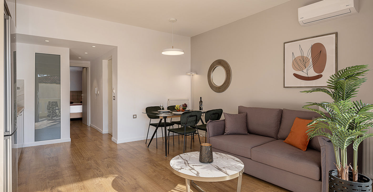 Το Angelo Luxury Apartment είναι ένα πολυτελές και άνετο διαμέρισμα που βρίσκεται στην παραθαλάσσια περιοχή της Νέας Χώρας, στα Χανιά. Απέχει μόλις 5 λεπτά με τα πόδια από την παραλία της Νέας Χώρας και 8 λεπτά με τα πόδια από τη παλιά πόλη. Είναι πλήρως επιπλωμένο και εξοπλισμένο και παρέχει στους επισκέπτες του όλες τις απαραίτητες ανέσεις για μια άνετη και αξέχαστη διαμονή. Αποτελεί μια τέλεια επιλογή για να ξεκινήσετε την εξερεύνηση στην πόλη των Χανίων. Το διαμέρισμα είναι 50 τμ, στον 2ο όροφο πολυκατοικίας και μπορεί να φιλοξενήσει έως 4 άτομα (υπνοδωμάτιο με king size διπλό κρεββάτι και καναπέ-κρεββάτι στο σαλόνι). Η μοντέρνα αισθητική του και η επιλογή χρωμάτων, επίπλων και διακοσμητικών το καθιστούν κομψό και μοναδικό. Επιπλέον, έχουν χρησιμοποιηθεί ανατομικά στρώματα από διακεκριμένη ελληνική μάρκα, καθώς και 100% βαμβακερά σεντόνια, προκειμένου να διασφαλιστεί η υψηλή ποιότητα ύπνου των επισκεπτών μας. Στην αμμώδη, οργανωμένη παραλία (με ξαπλώστρες) της Νέας Χώρας, μπορείτε να απολαύσετε τον κρητικό ήλιο και τη θάλασσα και να δοκιμάσετε υπέροχες γεύσεις σε μια από τις πολλές ταβέρνες που βρίσκονται εκεί. Η τοποθεσία του σπιτιού βρίσκεται σε εξαιρετική περιοχή και σε κοντινή απόσταση, μπορείτε να βρείτε σούπερ μάρκετ, παντοπωλεία, φαρμακεία, εστιατόρια και καφετέριες, ενώ η οδός Σκαλίδη με όλα τα καταστήματα ρούχων των πιο διάσημων brands (Zara, Pull and Bear, Stradivarius κλπ) και άλλες τοπικές μπουτίκ, τράπεζες κλπ είναι 400 μέτρα μακριά. Το διαμέρισμα περιλαμβάνει όλες τις τελευταίες και καλύτερες ανέσεις για να ικανοποιήσει τις ανάγκες σας, συμβάλλοντας έτσι σε μια ήρεμη και ξεκούραστη διαμονή στο νησί της Κρήτης.