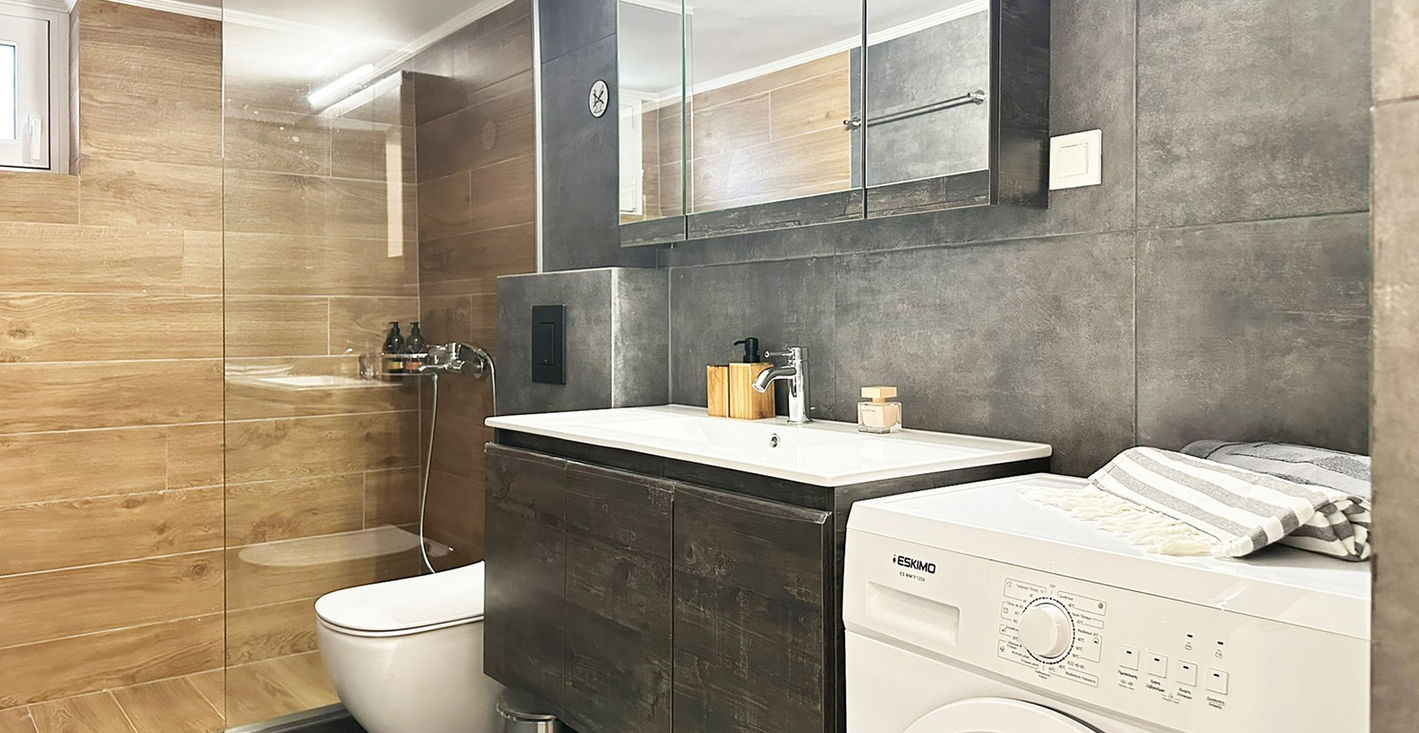 Μόλις ανεβείτε μερικά σκαλιά και περάσετε από την πόρτα της εισόδου, βρίσκεστε στον ενιαίο χώρο του σπιτιού. Εδώ, το σαλόνι σας υποδέχεται με έναν άνετο καναπέ, ένα ανάκλιντρο για περαιτέρω χαλάρωση και μια smart τηλεόραση για να απολαύσετε τις αγαπημένες σας ταινίες και σειρές. Ο μοντέρνος σχεδιασμός και η προσεκτική επιλογή επίπλων δημιουργούν μια ζεστή ατμόσφαιρα.